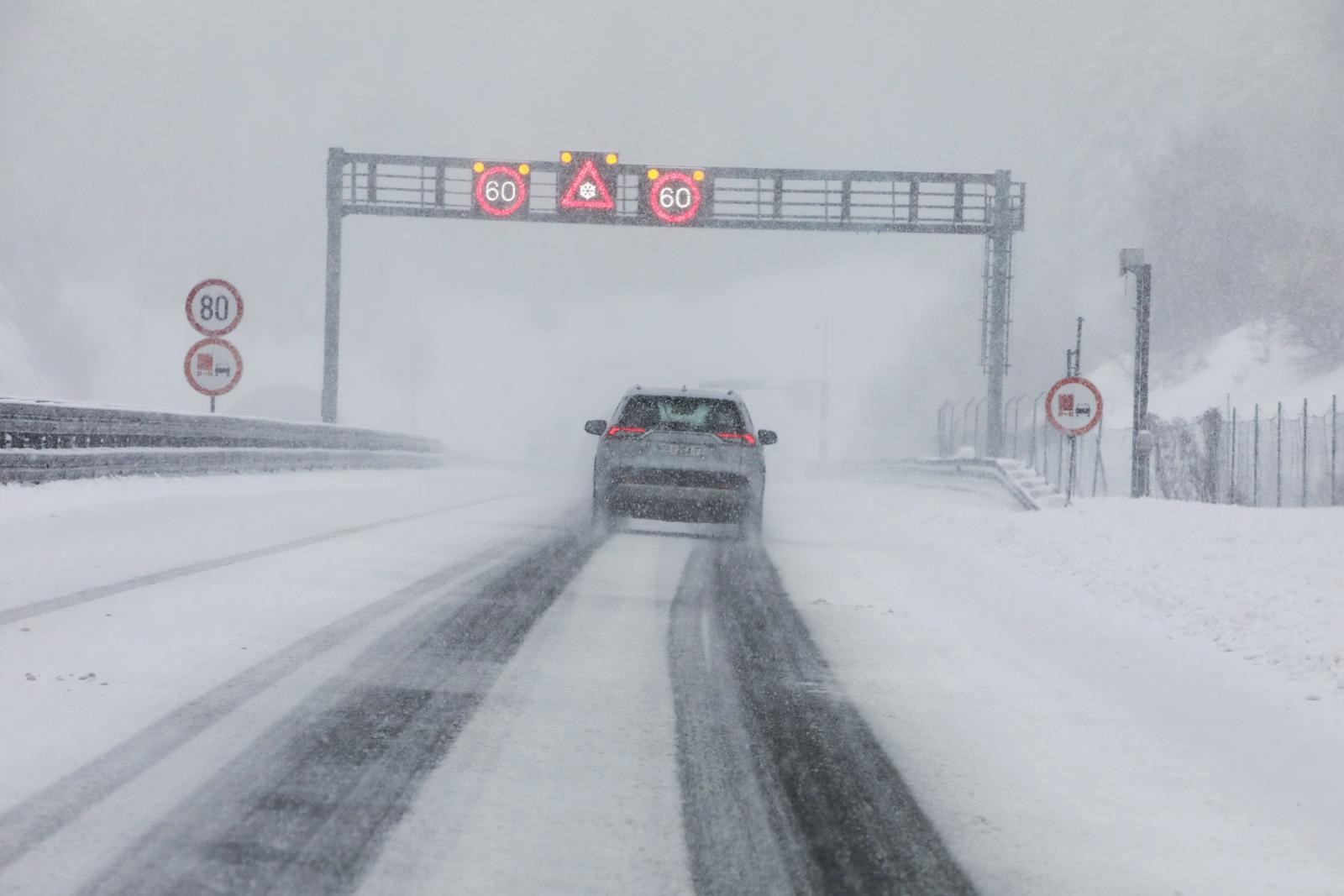 U dijelovima Gorskog kotara i Like jutros je pao snijeg koji se zadržao na tlu. Na dijelu autoceste A6 Zagreb-Rijeka, između vijadukta Zalesina i tunela Tuhobić cesta je prekrivena snijegom, što stvara ozbiljne probleme u prometu.